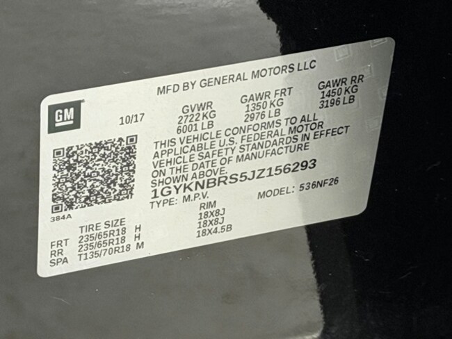 - VIN : 1GYKNBRS5JZ156293
