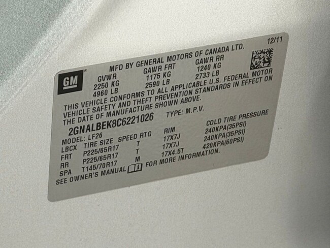 - VIN : 2GNALBEK8C6221026