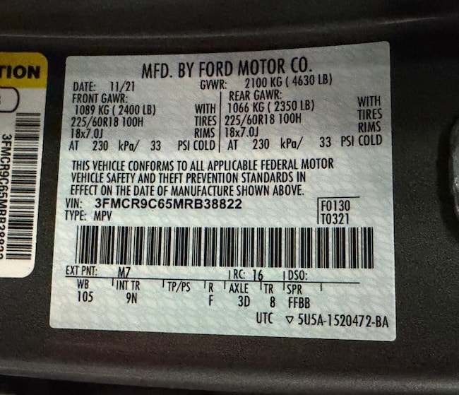 - VIN : 3FMCR9C65MRB38822