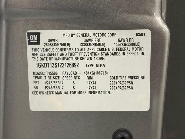 - VIN : 1GKDT13S122126892