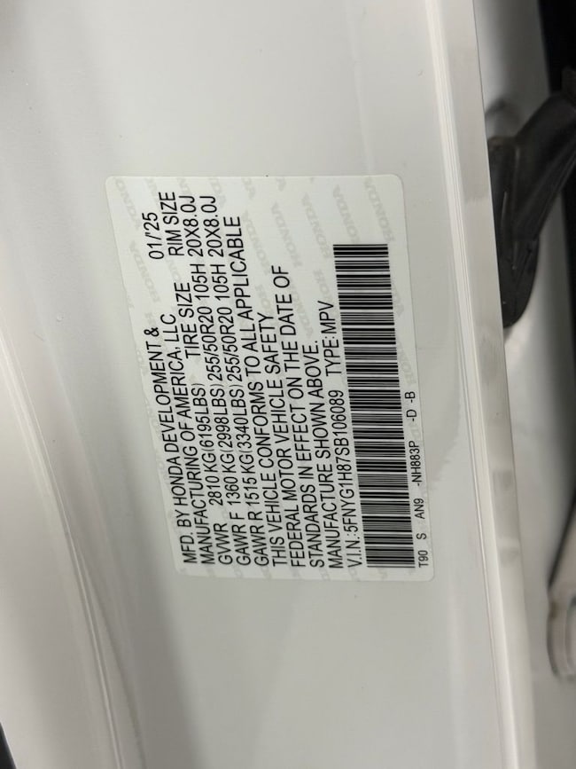 - VIN : 5FNYG1H87SB106089