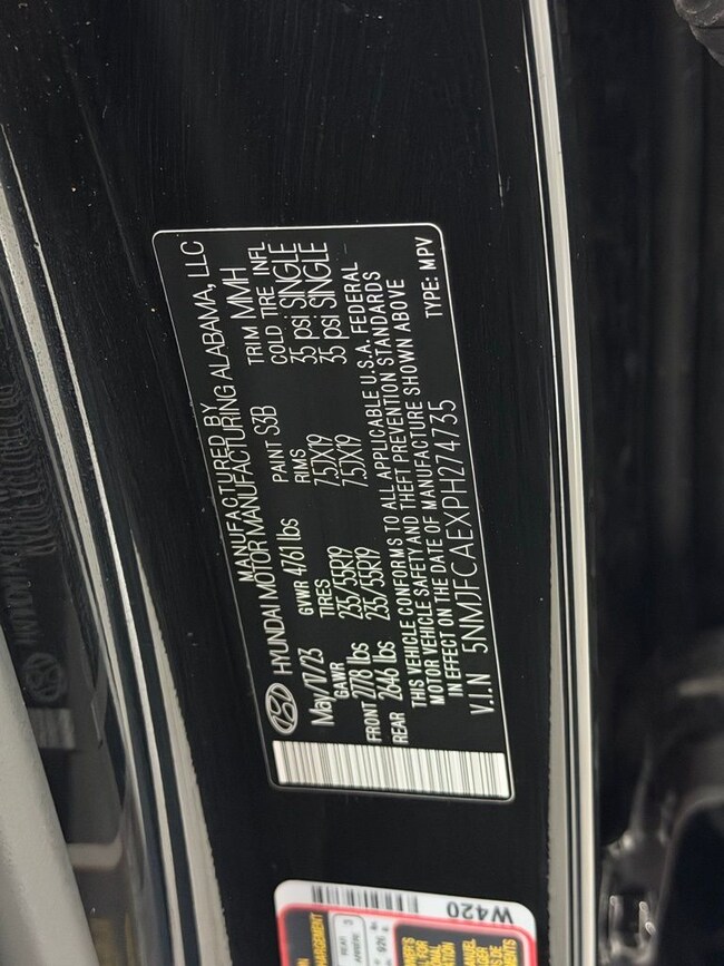 - VIN : 5NMJFCAEXPH274735