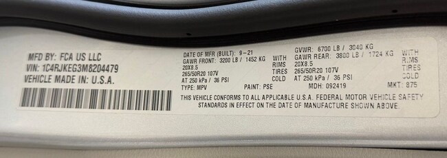 - VIN : 1C4RJKEG3M8204479